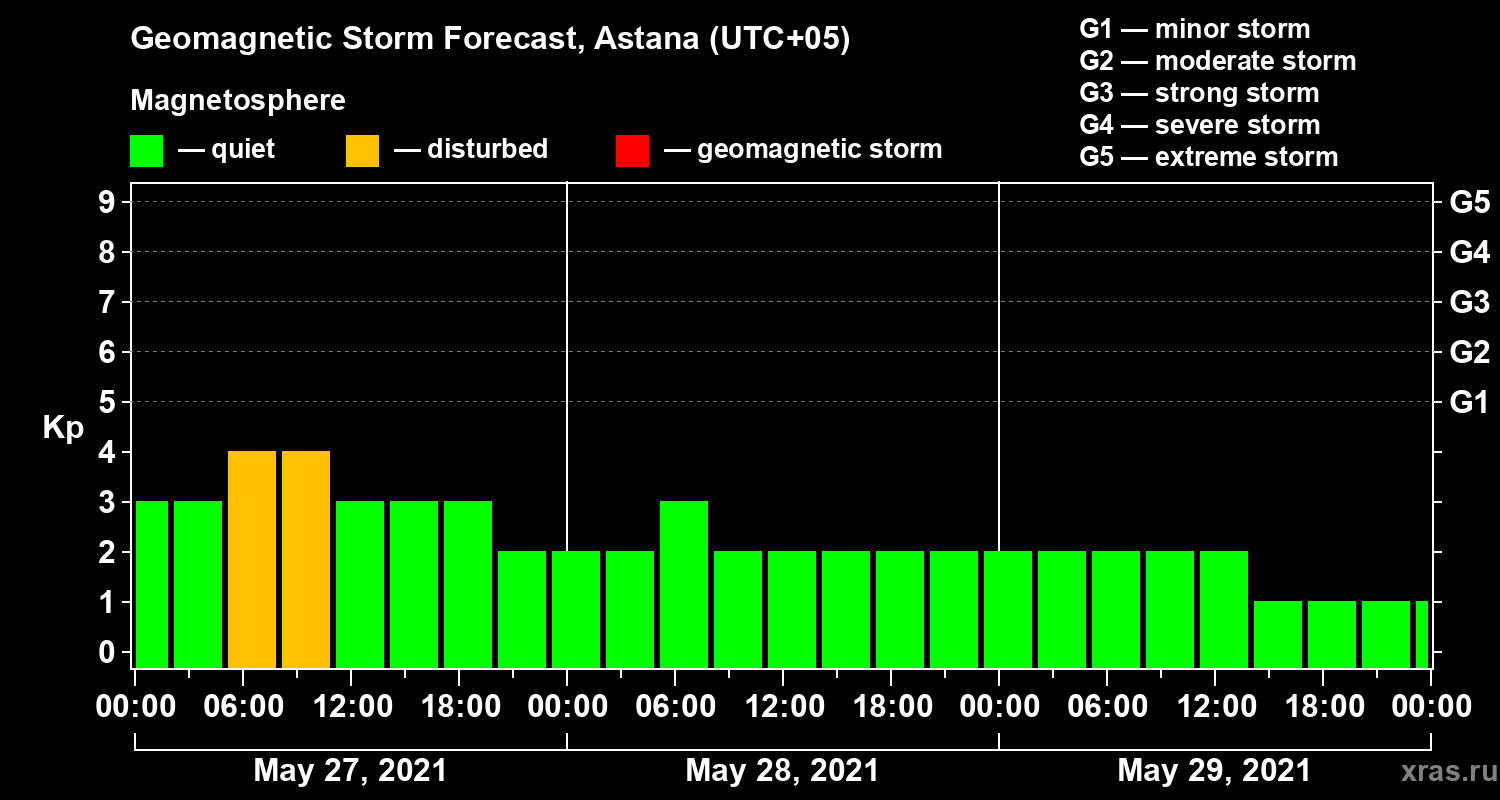 Geomagnetic activity forecast in Astana — May 27, 2021