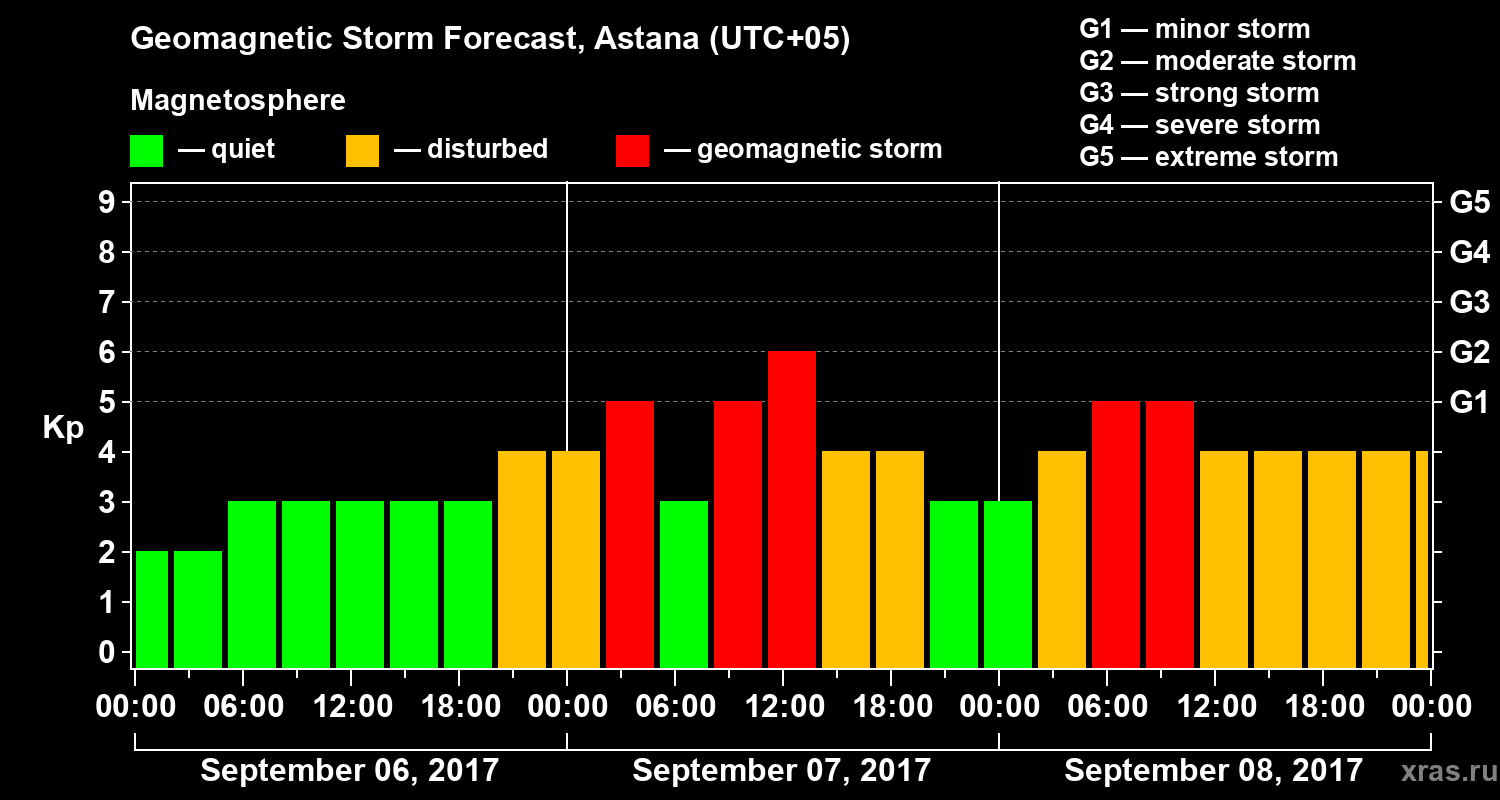 Geomagnetic storm forecast in Astana for Sep 06, 2017