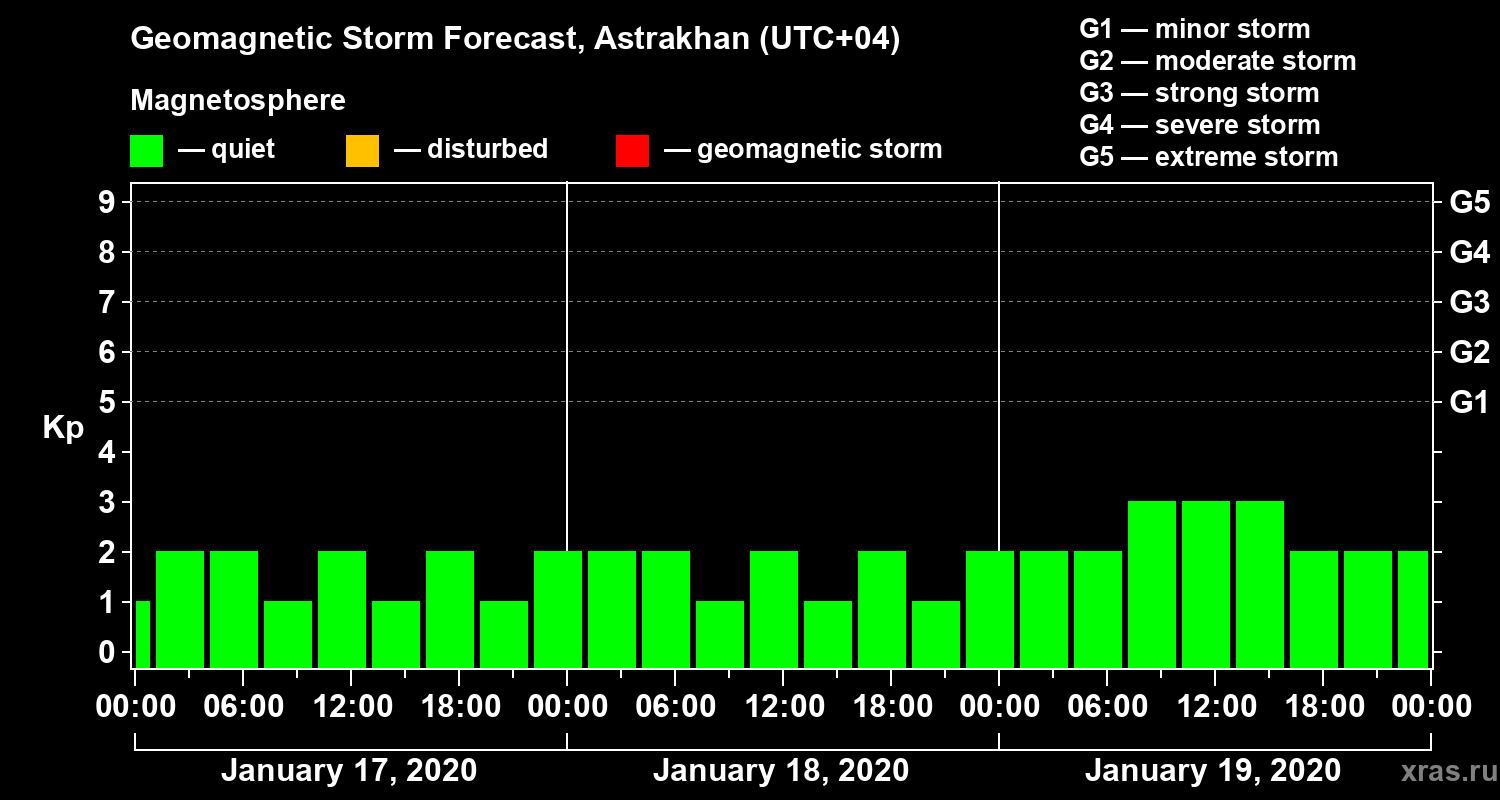 Geomagnetic storm forecast in Astrakhan for Jan 17, 2020