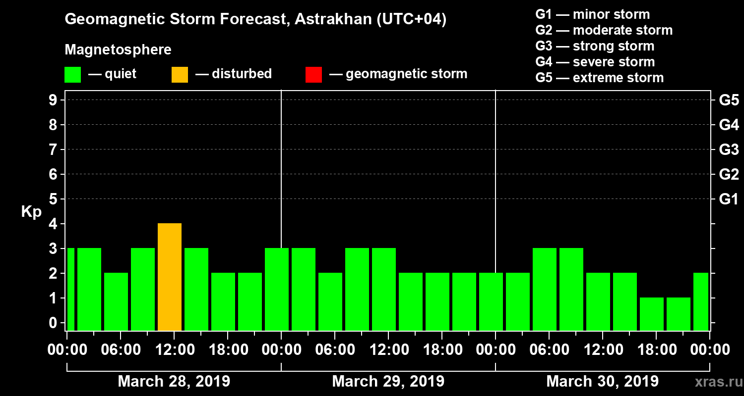 Geomagnetic storm forecast in Astrakhan for Mar 28, 2019