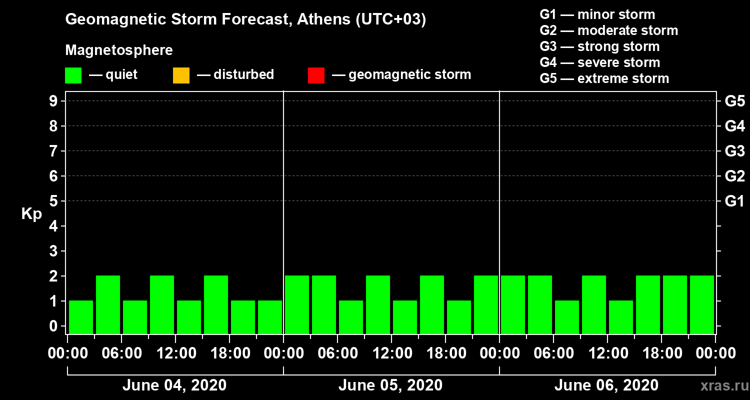 Geomagnetic storm forecast in Athens for Jun 04, 2020