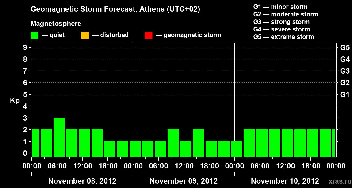 Geomagnetic storm forecast in Athens for Nov 08, 2012