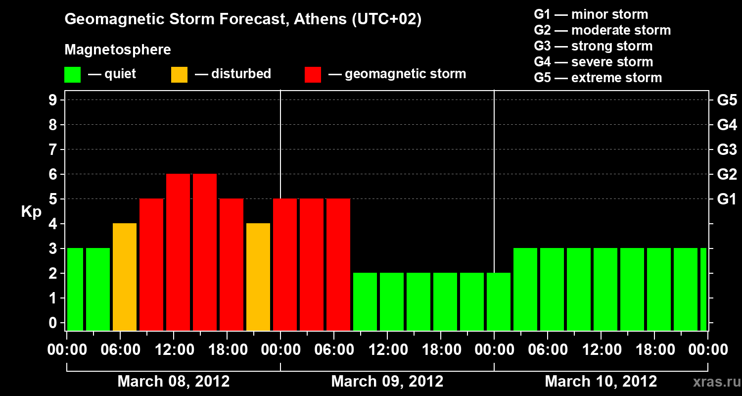 Geomagnetic storm forecast in Athens for Mar 08, 2012