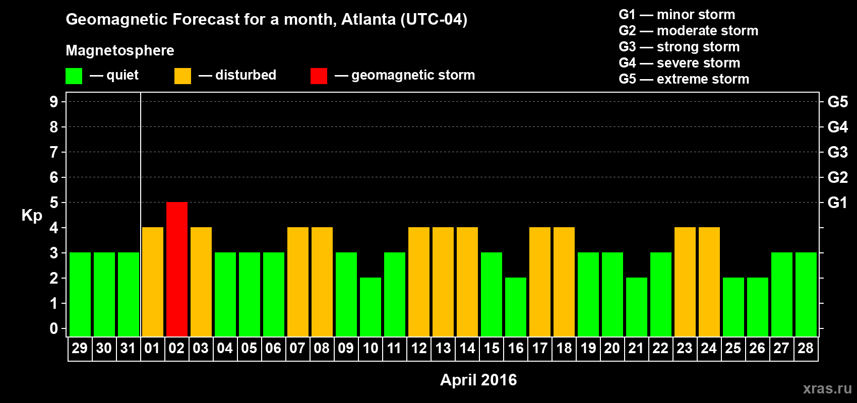 Geomagnetic storm forecast in Atlanta for Mar 29, 2016