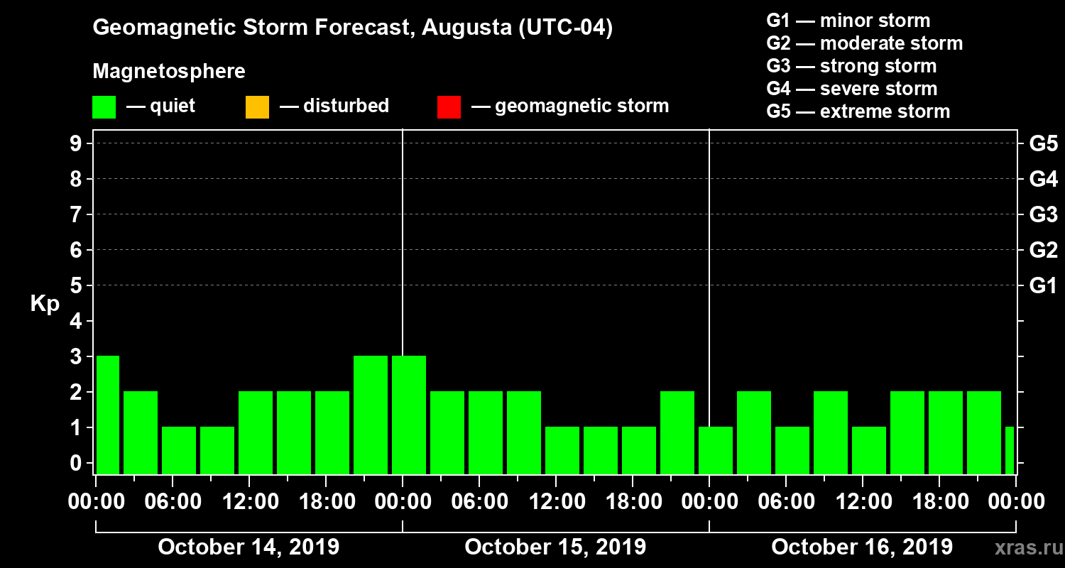 Geomagnetic storm forecast in Augusta for Oct 14, 2019