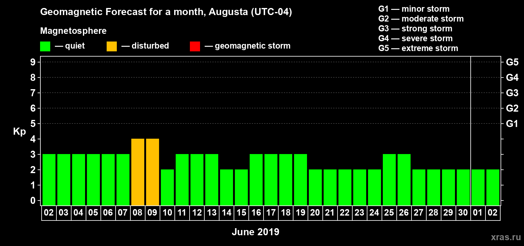 Geomagnetic storm forecast in Augusta for Jun 02, 2019