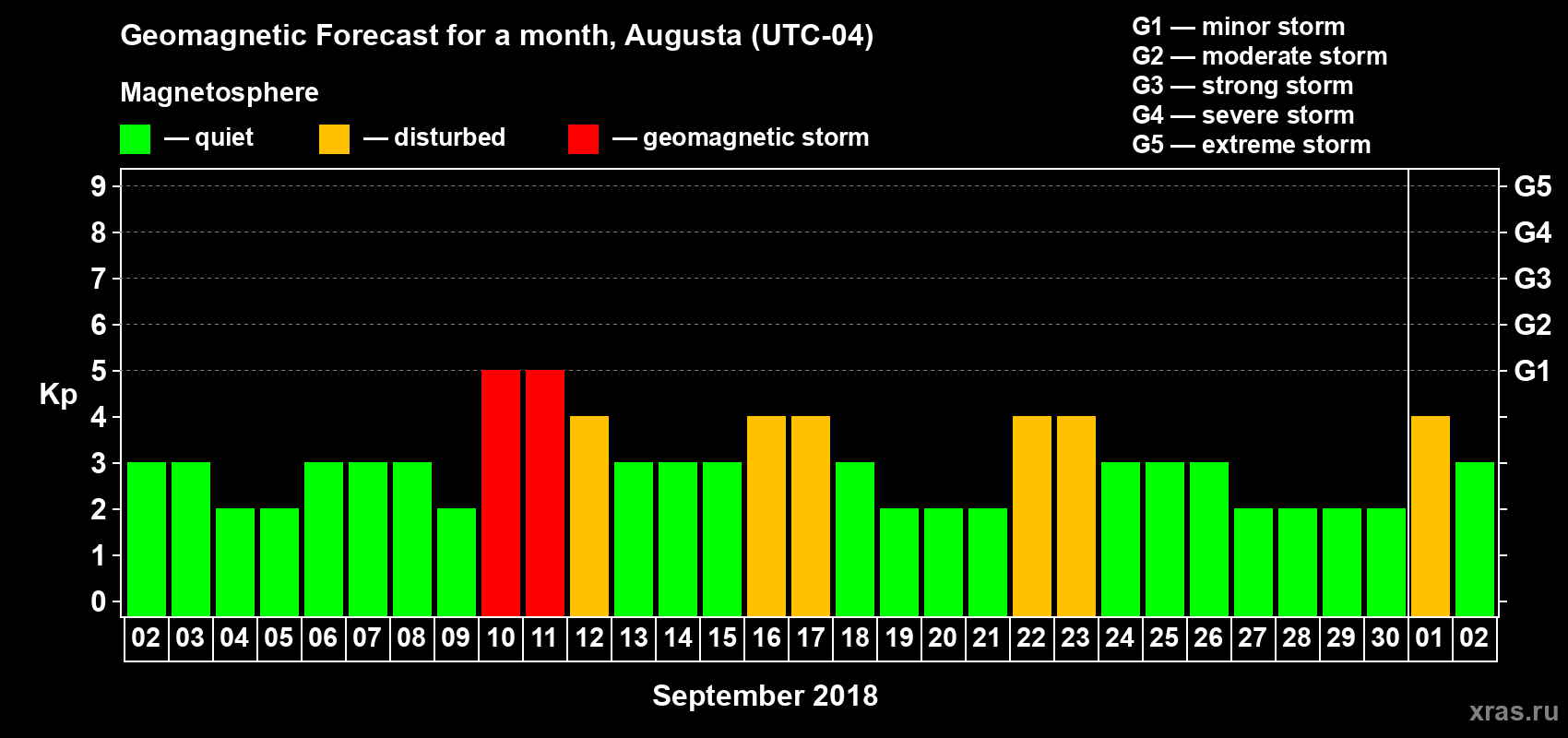 Geomagnetic storm forecast in Augusta for Sep 02, 2018