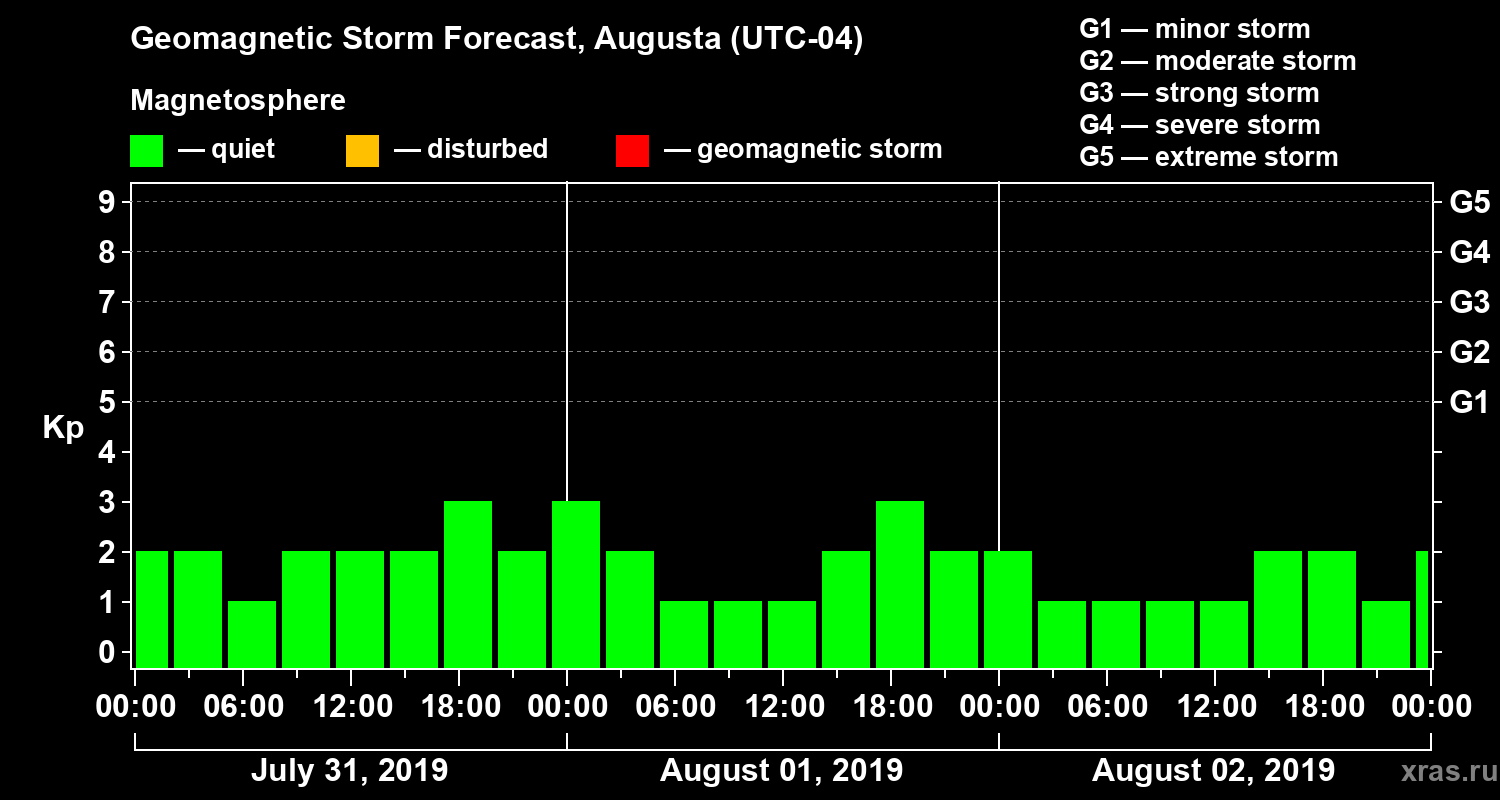 Geomagnetic storm forecast in Augusta for Jul 31, 2019