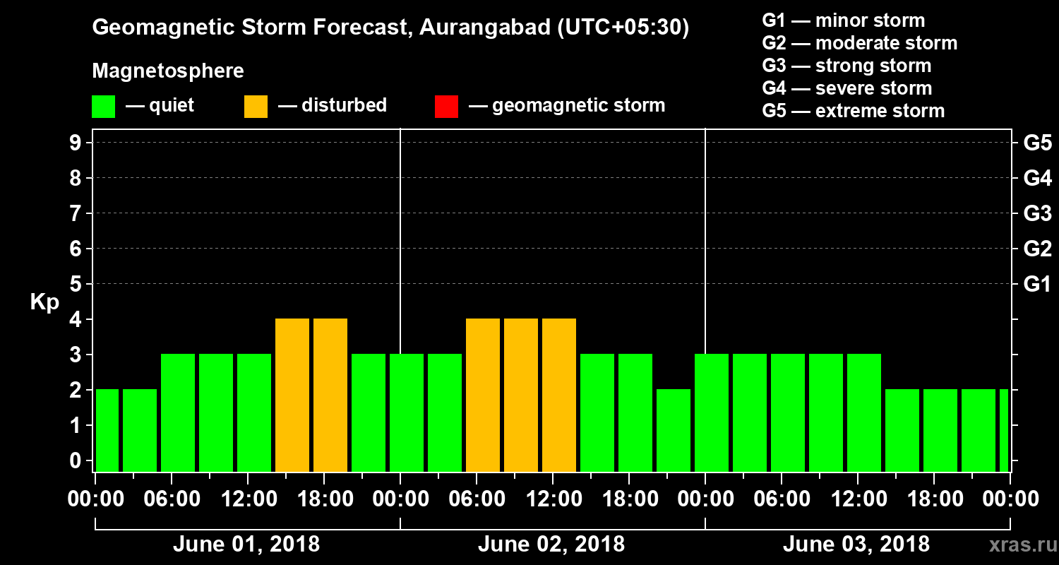 Geomagnetic storm forecast in Aurangabad for Jun 01, 2018
