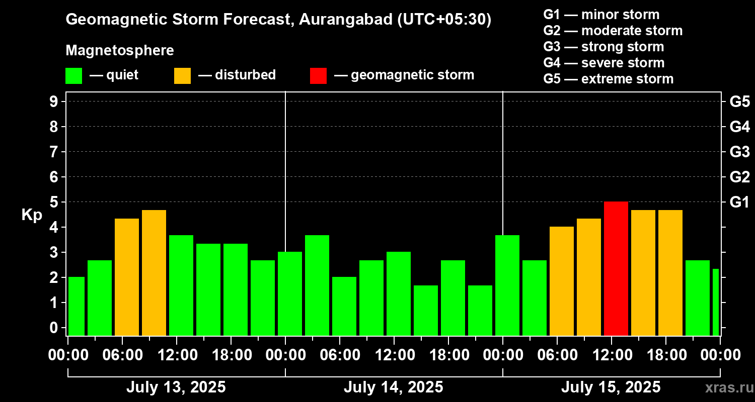 Geomagnetic storm forecast in Aurangabad for Jul 13, 2025