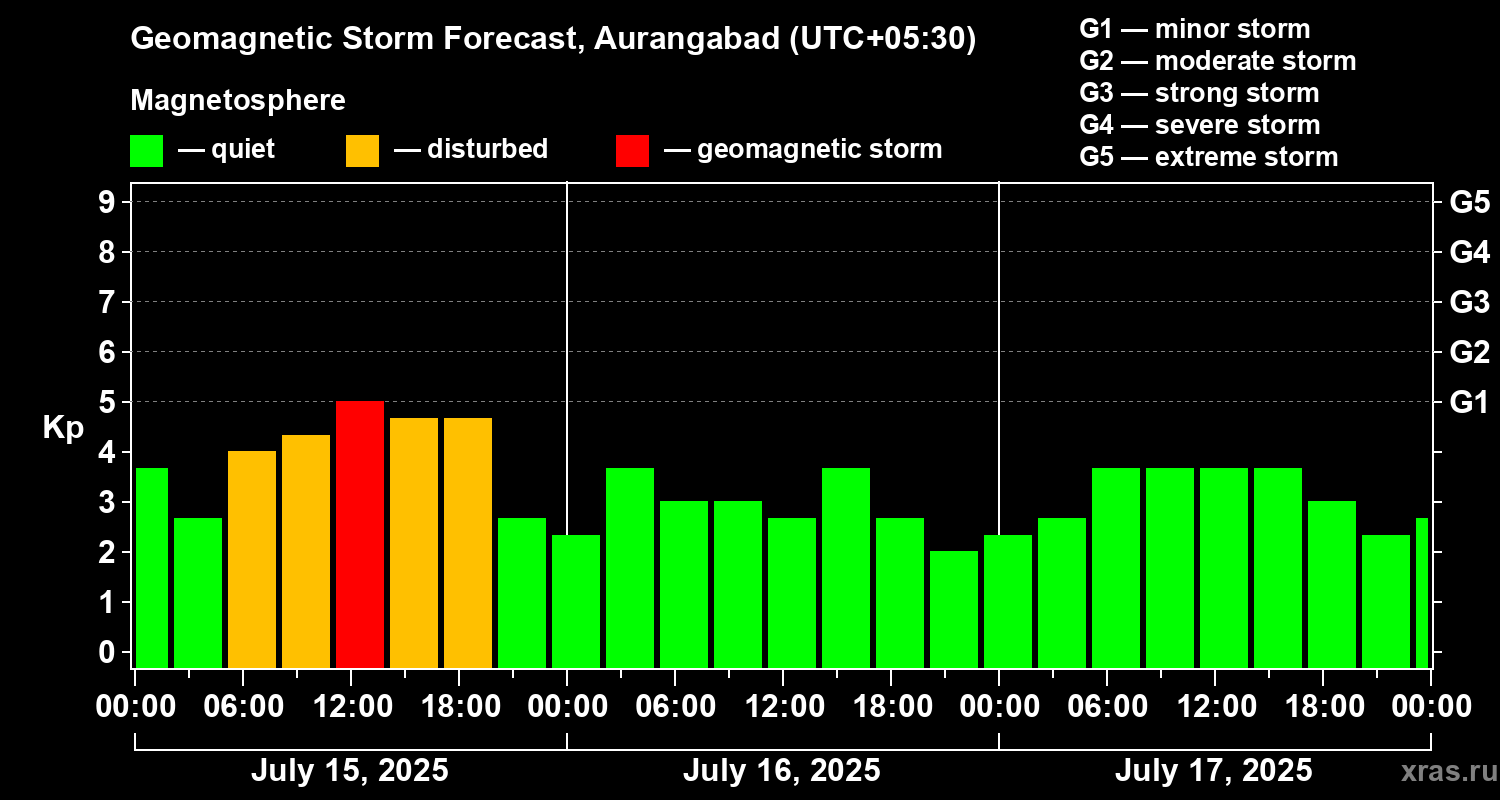 Geomagnetic storm forecast in Aurangabad for Jul 15, 2025