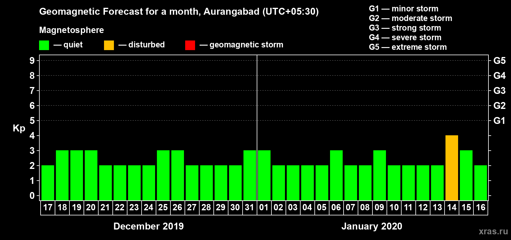 Geomagnetic storm forecast in Aurangabad for Dec 17, 2019