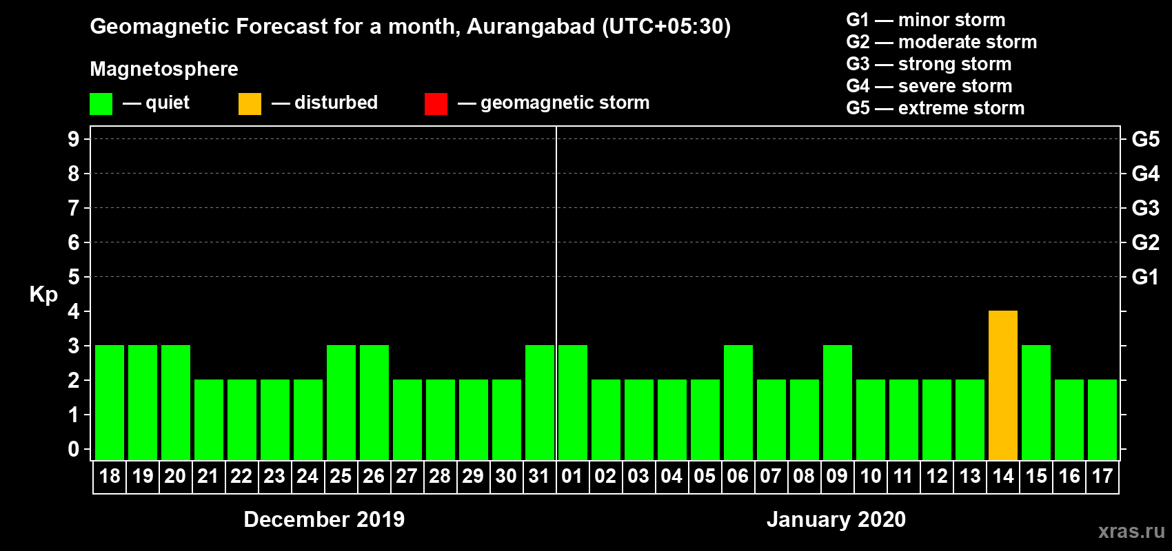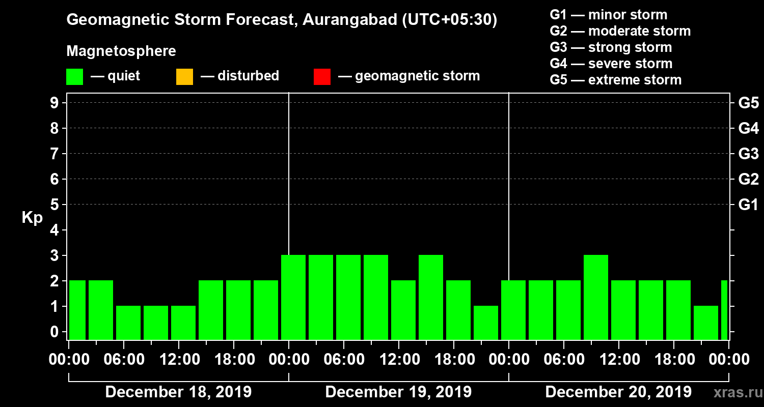 Geomagnetic storm forecast in Aurangabad for Dec 18, 2019
