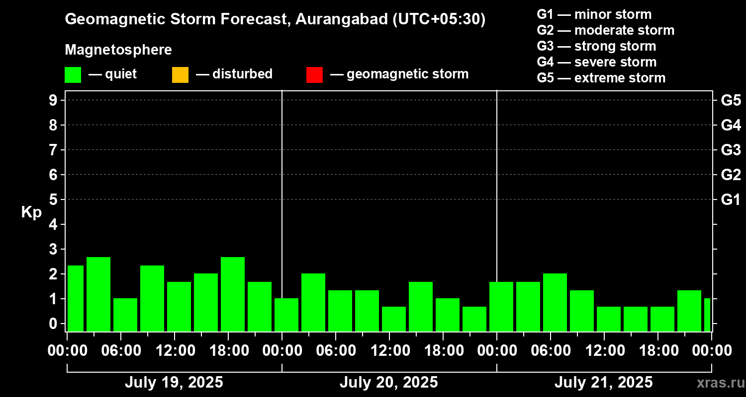 Geomagnetic storm forecast in Aurangabad for Jul 19, 2025