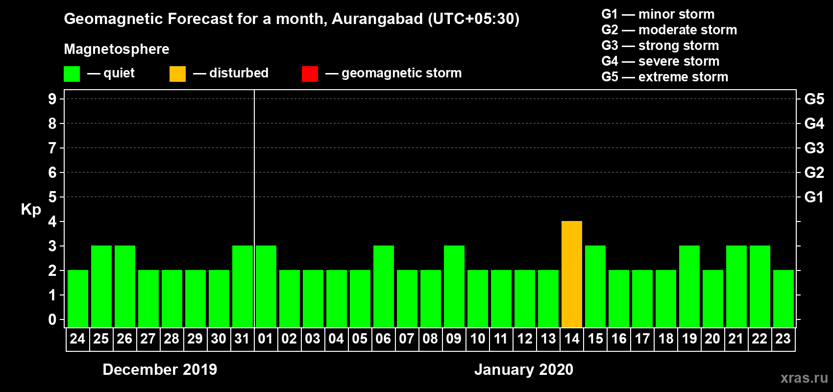 Geomagnetic storm forecast in Aurangabad for Dec 24, 2019