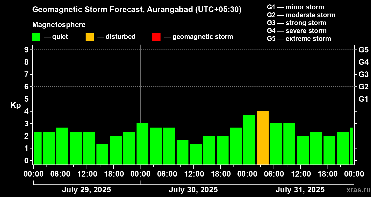 Geomagnetic storm forecast in Aurangabad for Jul 29, 2025