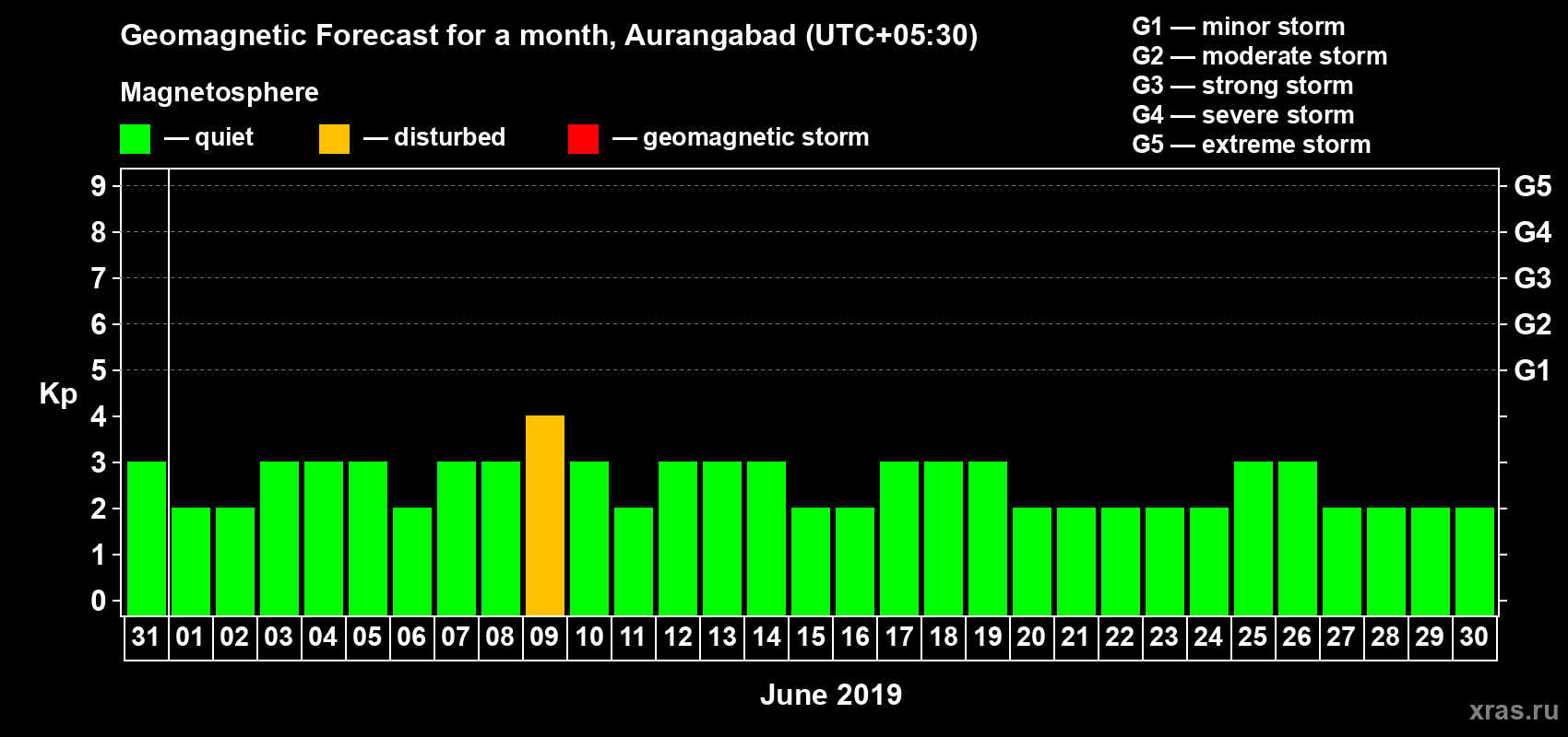 Geomagnetic storm forecast in Aurangabad for May 31, 2019