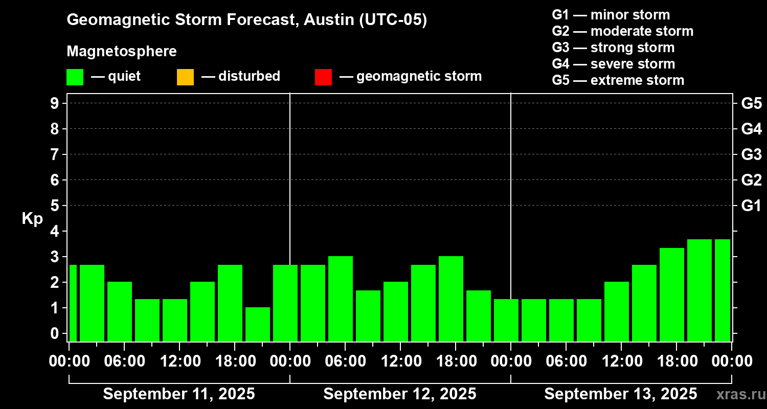 Geomagnetic storm forecast in Austin for Sep 11, 2025
