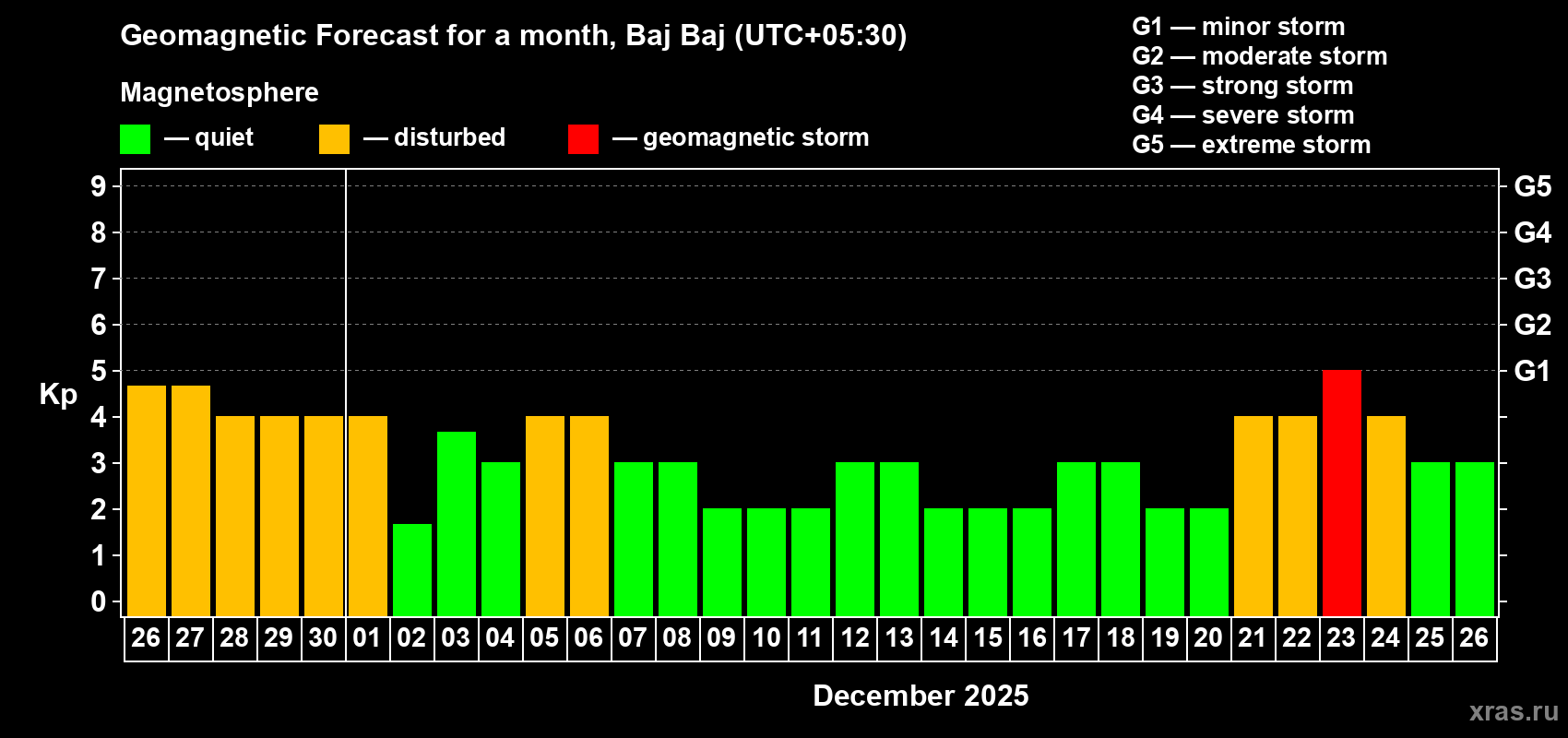 Geomagnetic storm forecast in Baj Baj for Nov 26, 2025