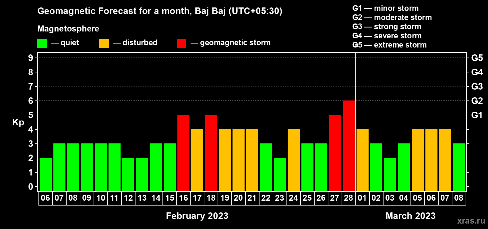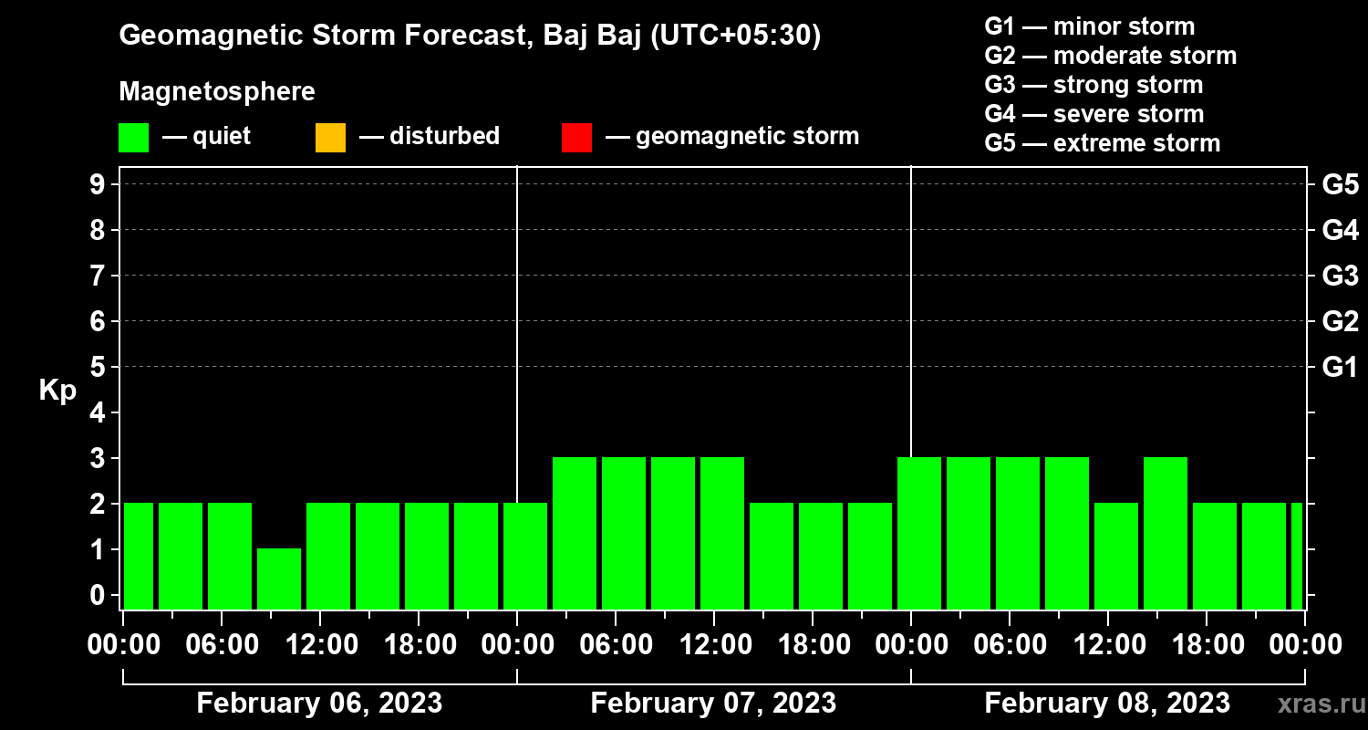 Geomagnetic storm forecast in Baj Baj for Feb 06, 2023