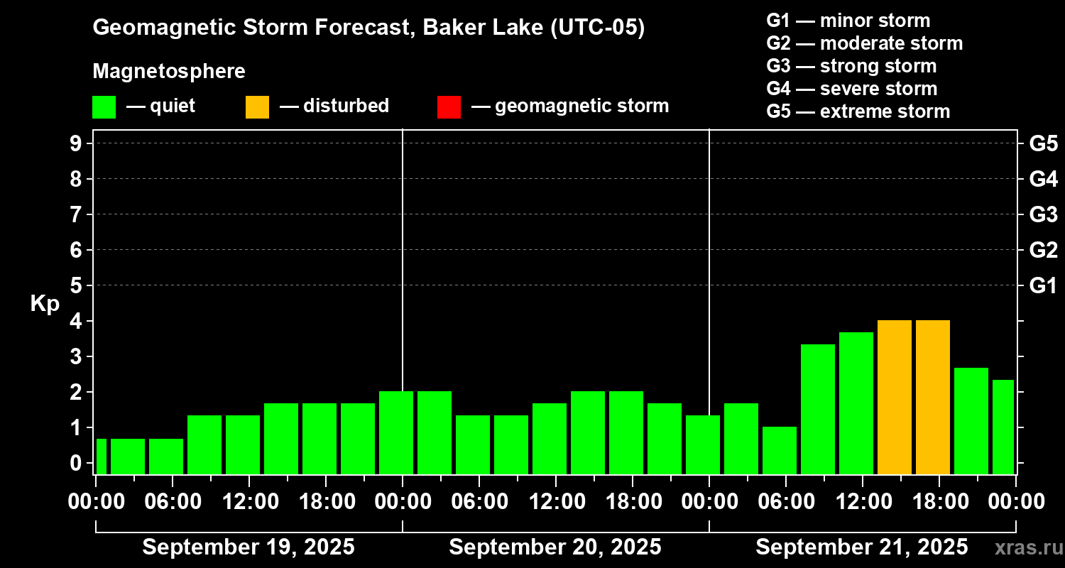 Geomagnetic storm forecast in Baker Lake for Sep 19, 2025