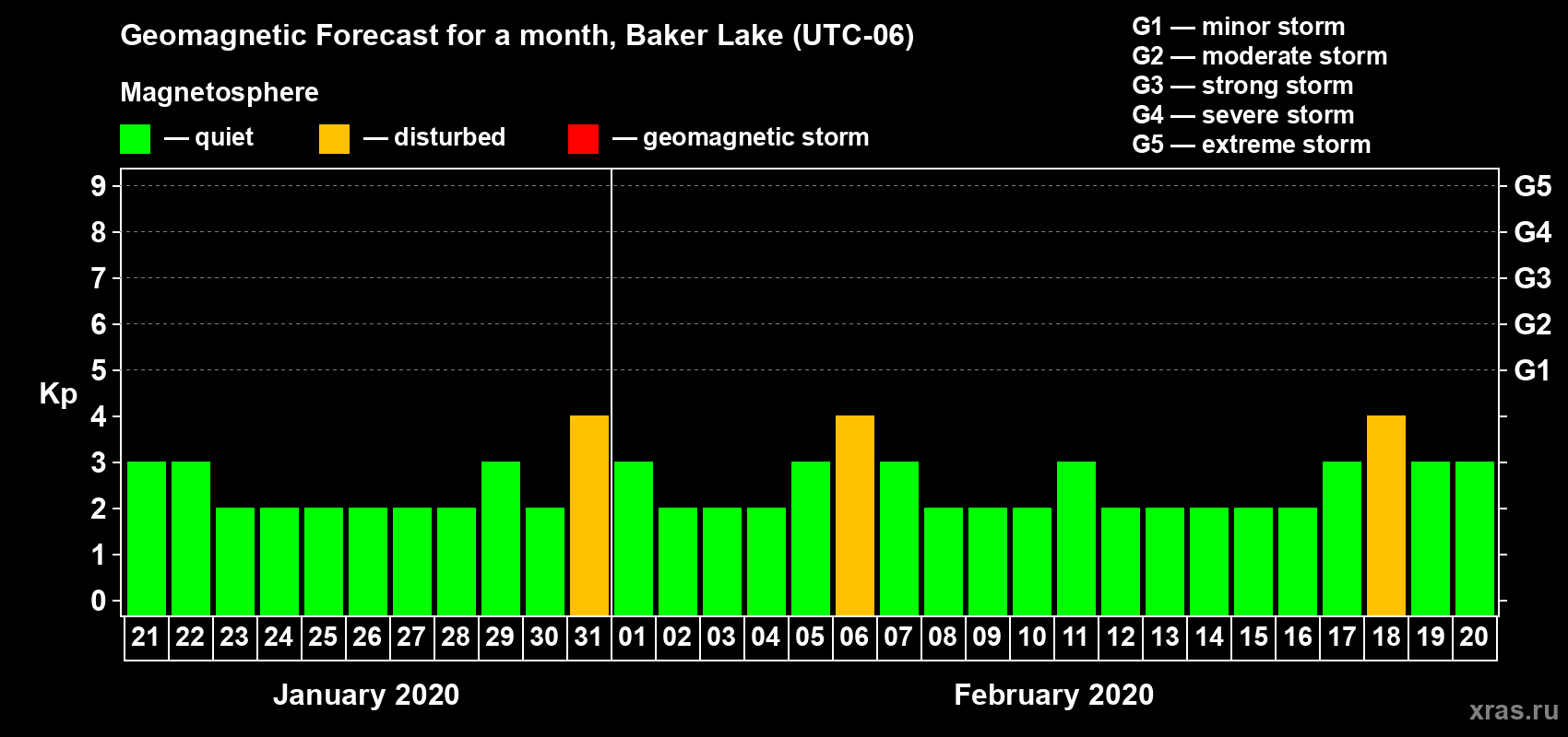 Geomagnetic storm forecast in Baker Lake for Jan 21, 2020