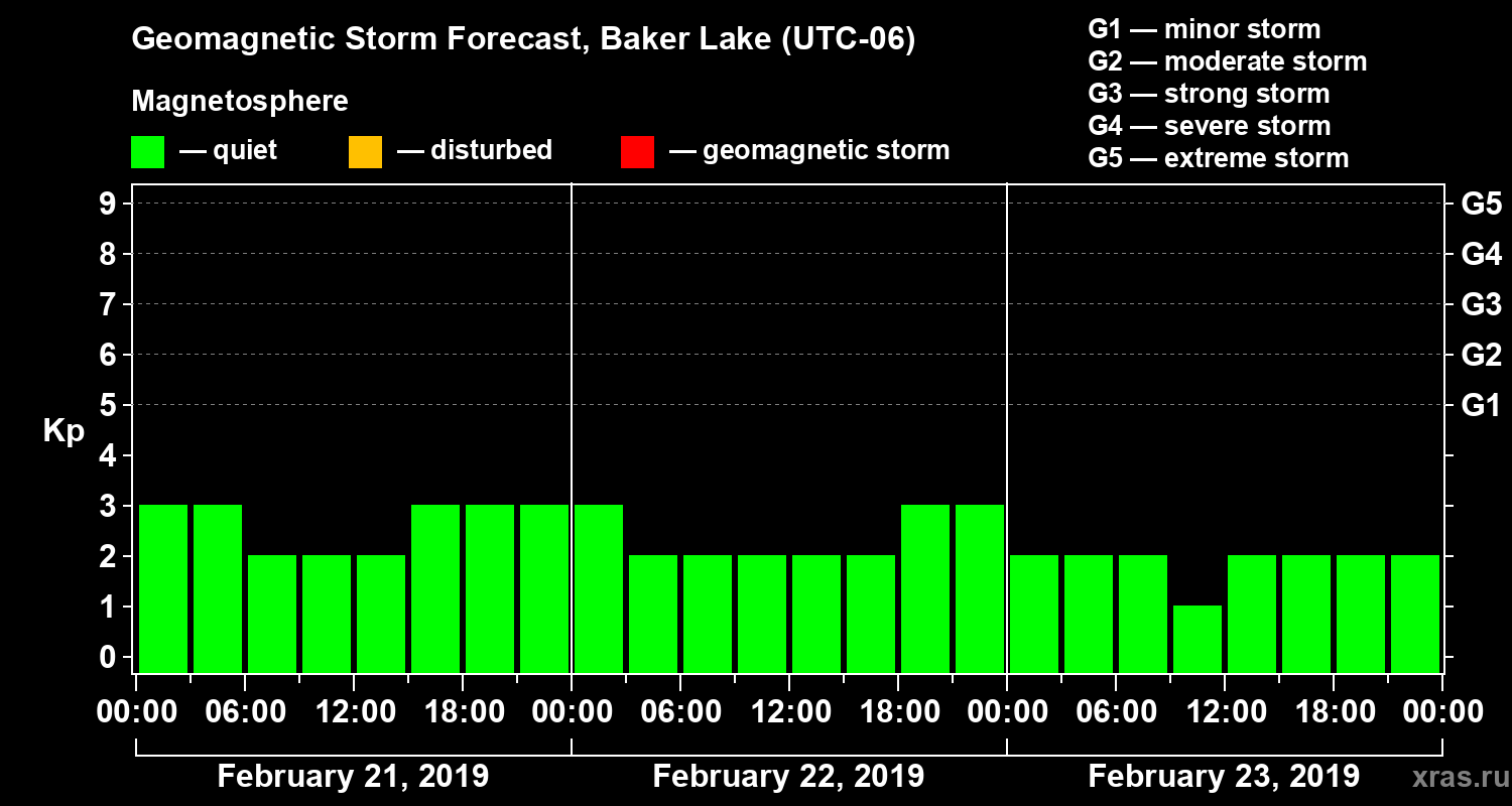Geomagnetic storm forecast in Baker Lake for Feb 21, 2019