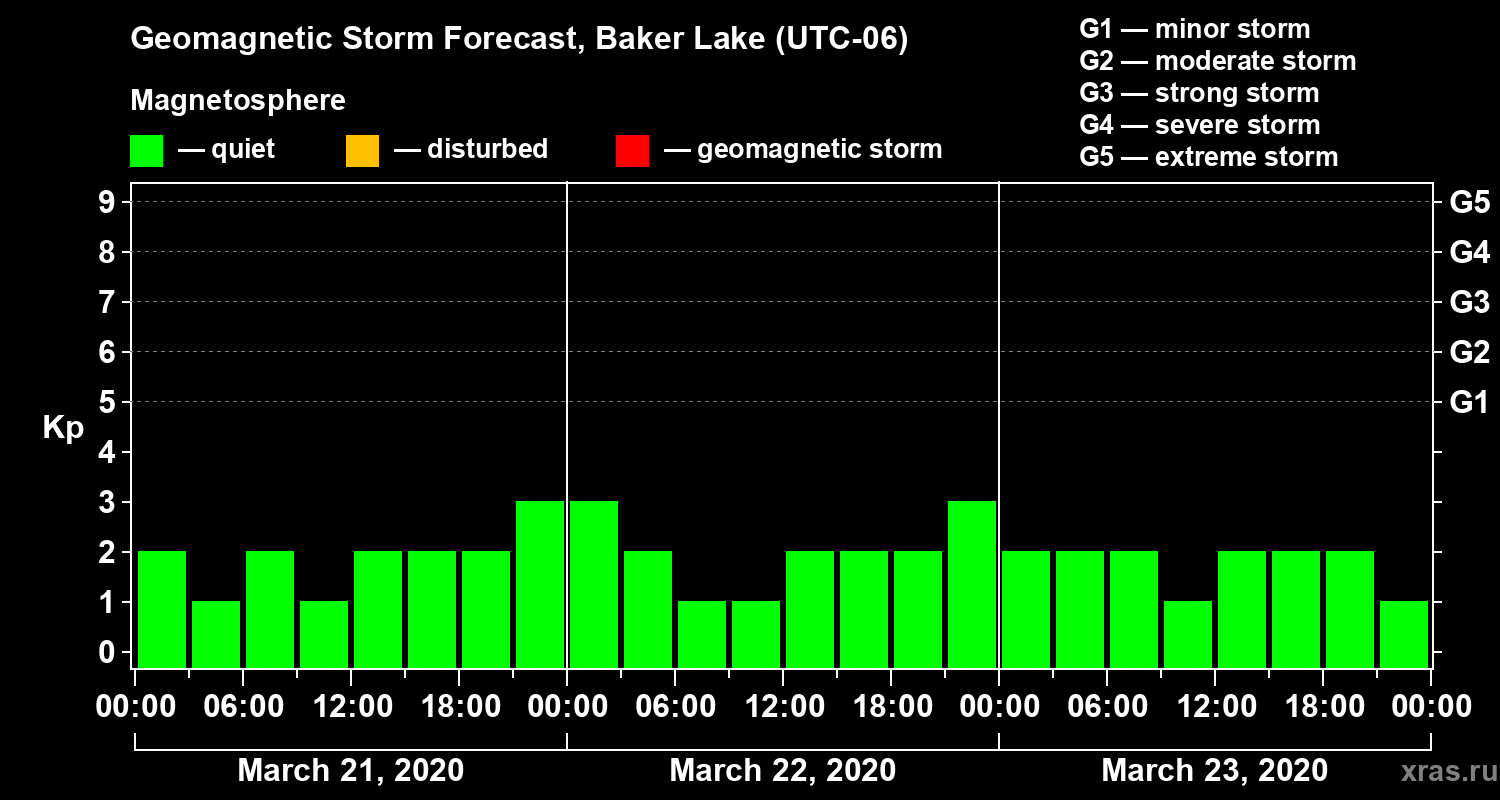 Geomagnetic storm forecast in Baker Lake for Mar 21, 2020