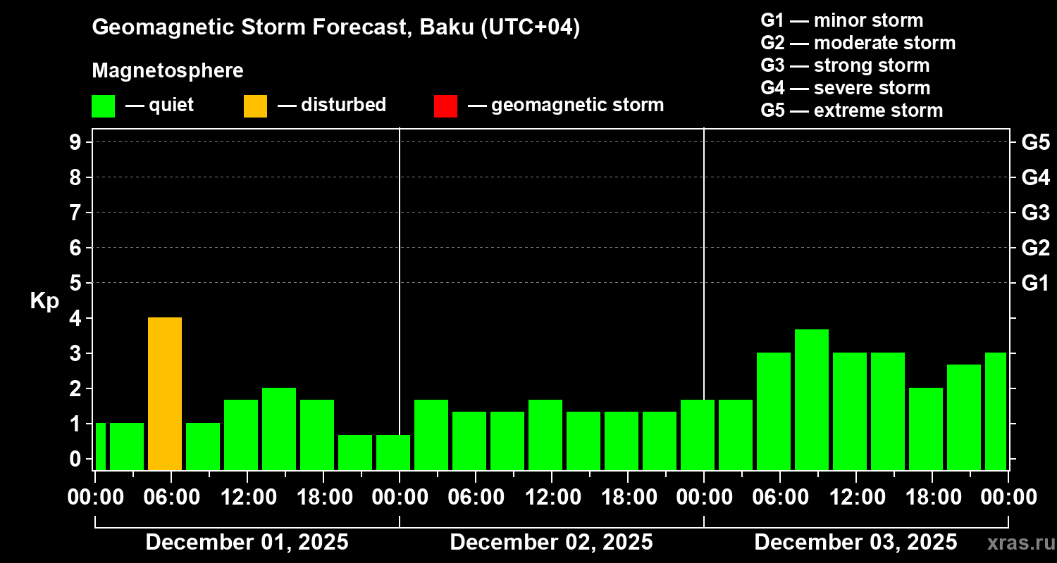 Geomagnetic storm forecast in Baku for Dec 01, 2025
