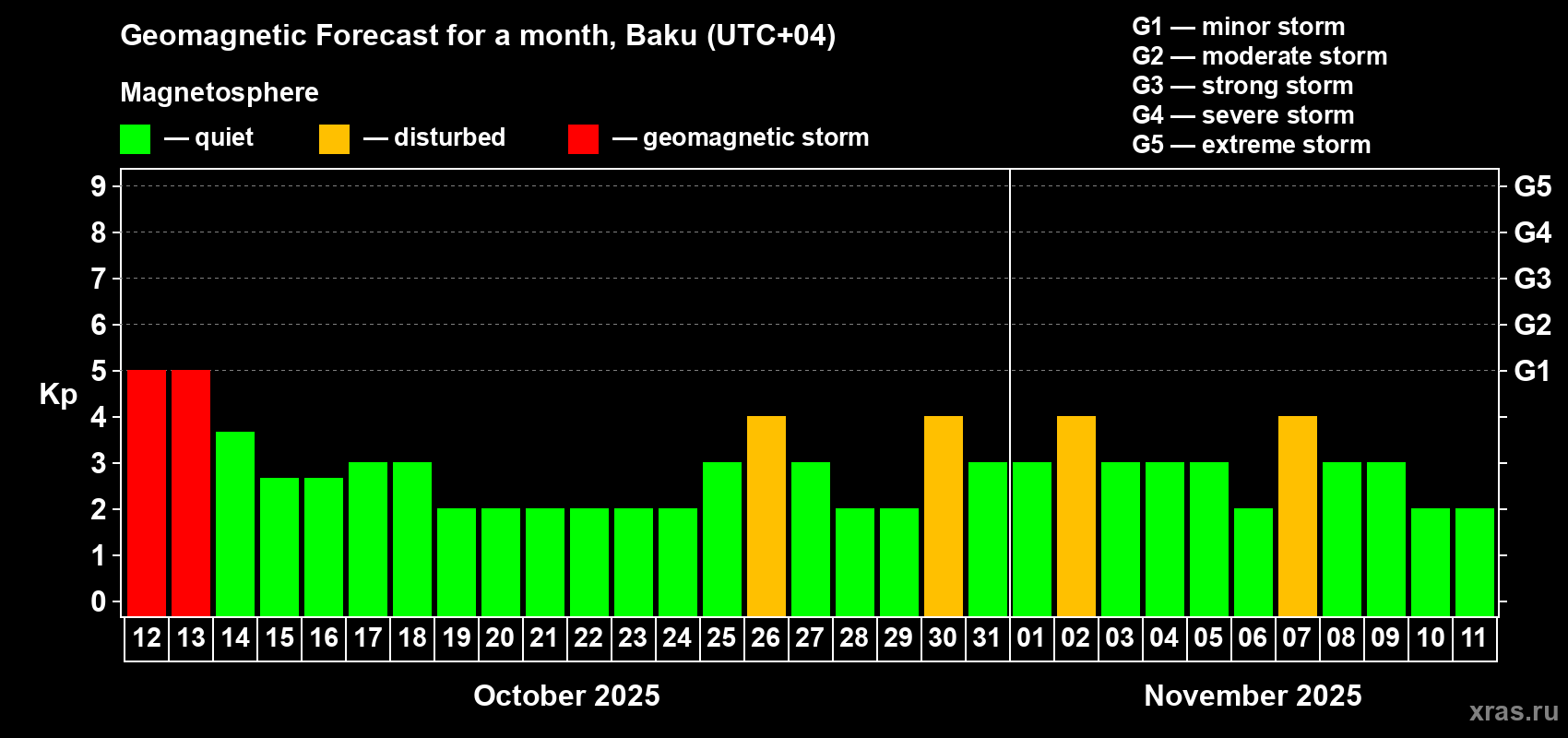 Geomagnetic storm forecast in Baku for Oct 12, 2025