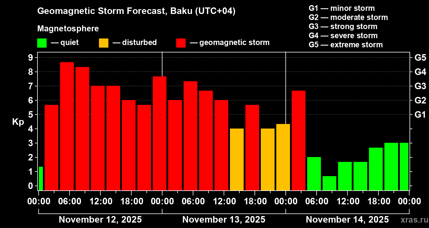 Geomagnetic storm forecast in Baku for Nov 12, 2025