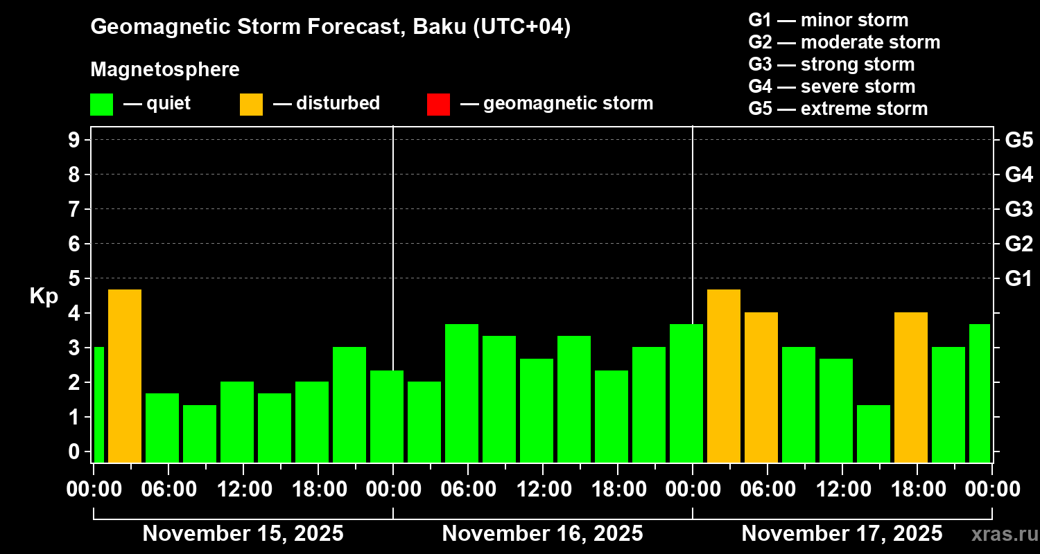 Geomagnetic storm forecast in Baku for Nov 15, 2025