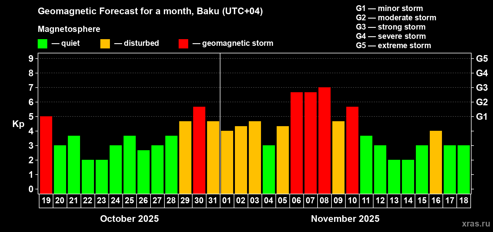Geomagnetic storm forecast in Baku for Oct 19, 2025