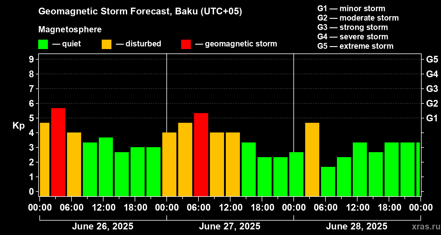 Geomagnetic storm forecast in Baku for Jun 26, 2025
