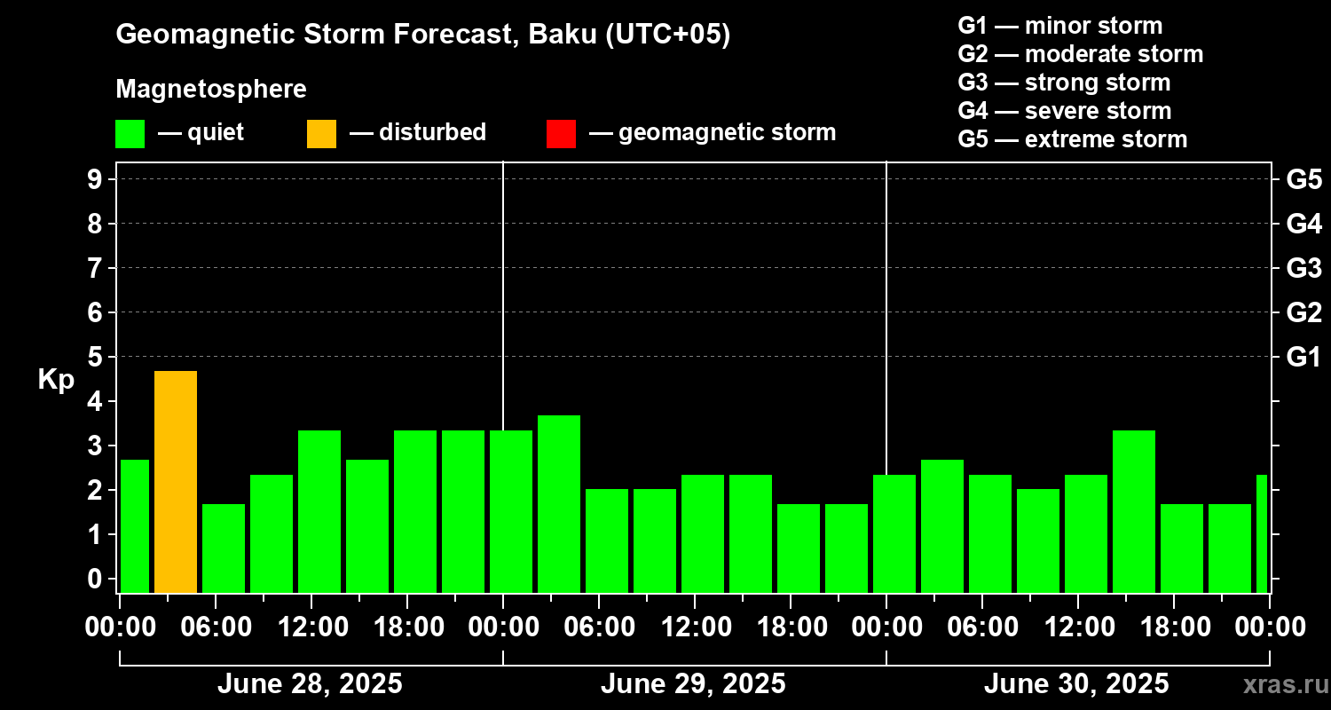 Geomagnetic storm forecast in Baku for Jun 28, 2025