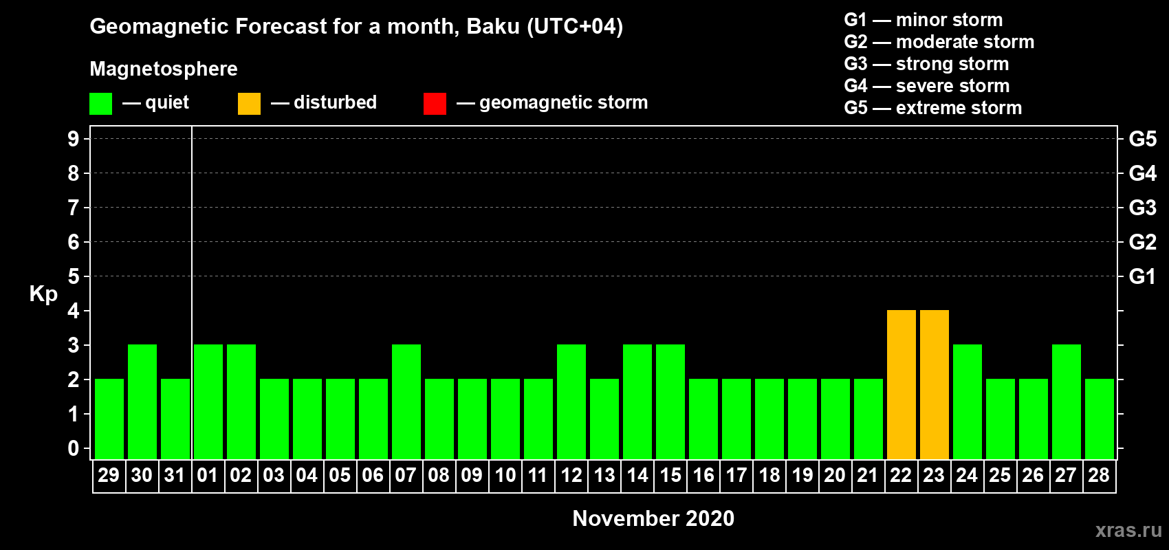 Geomagnetic activity forecast in Baku — Oct 29, 2020