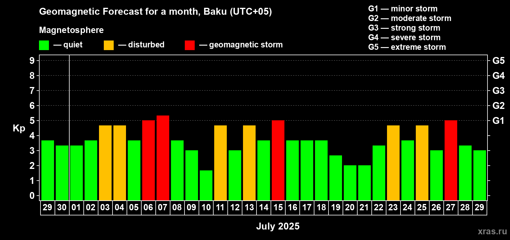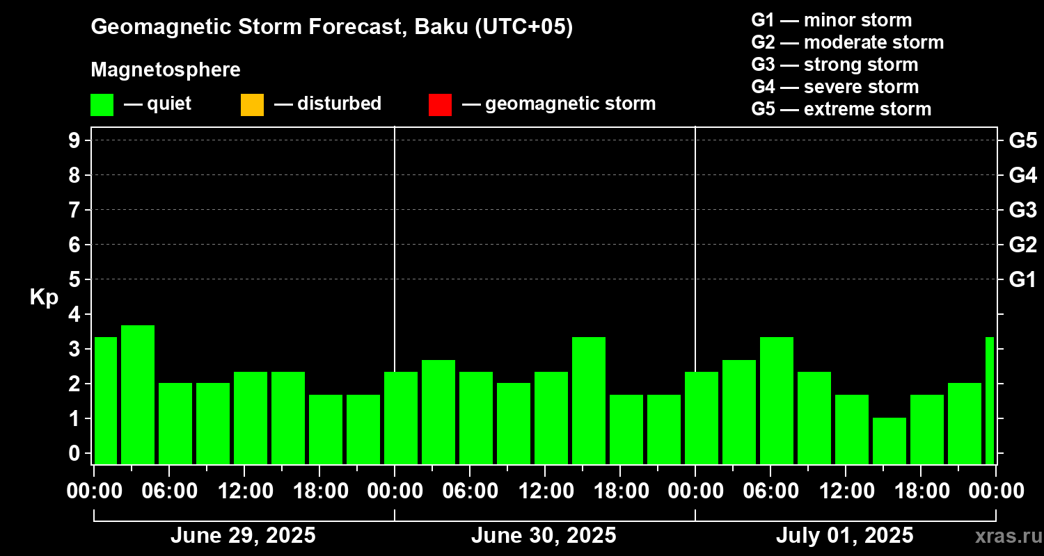 Geomagnetic storm forecast in Baku for Jun 29, 2025