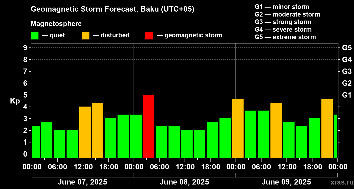 Geomagnetic storm forecast in Baku for Jun 07, 2025