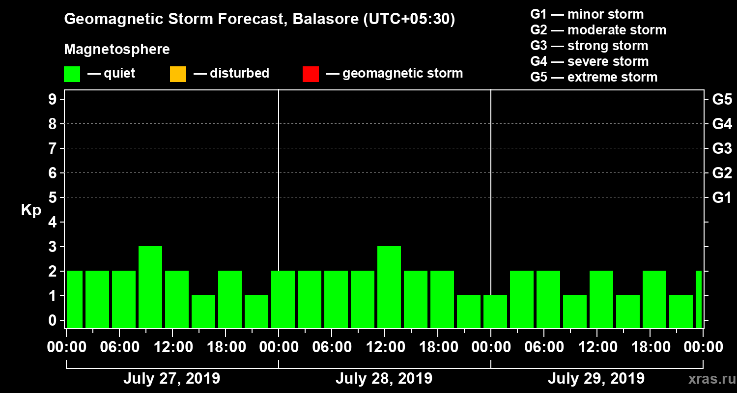 Geomagnetic storm forecast in Balasore for Jul 27, 2019