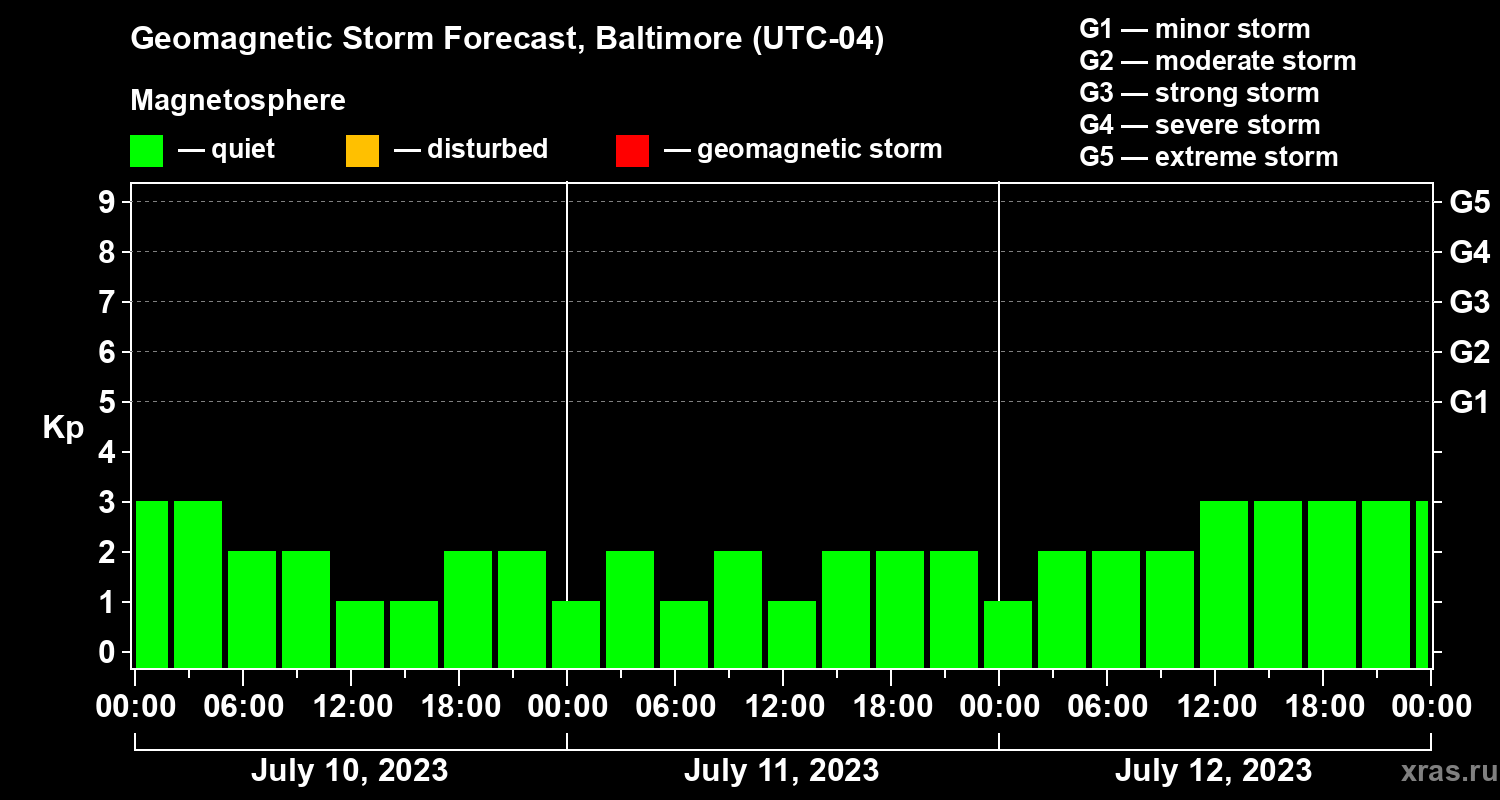 Geomagnetic storm forecast in Baltimore for Jul 10, 2023