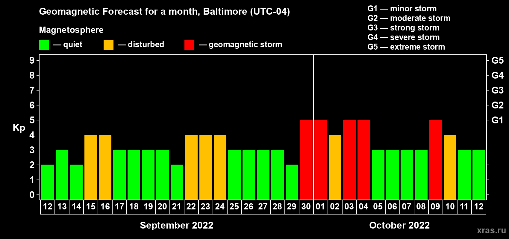 Geomagnetic storm forecast in Baltimore for Sep 12, 2022