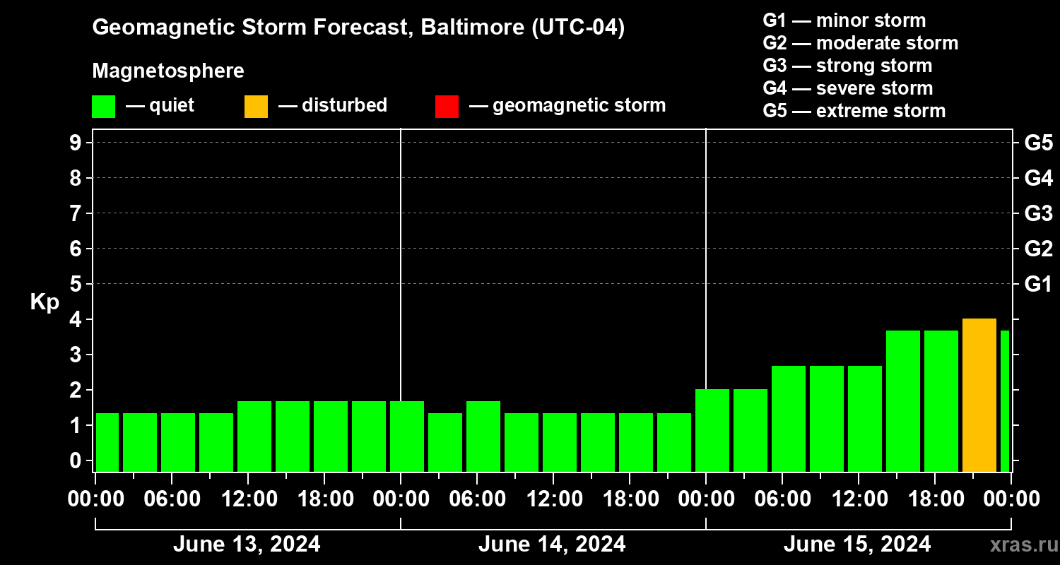 Geomagnetic storm forecast in Baltimore for Jun 13, 2024