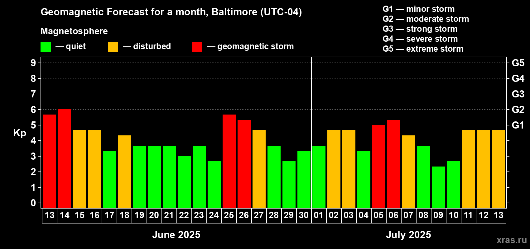 Geomagnetic storm forecast in Baltimore for Jun 13, 2025
