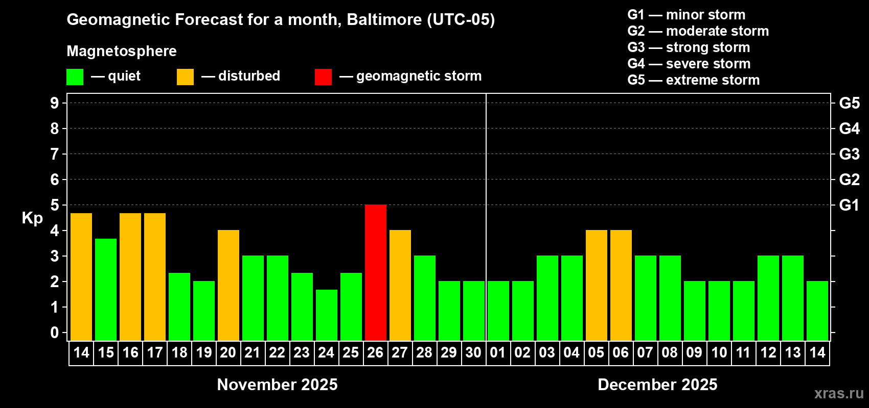 Geomagnetic storm forecast in Baltimore for Nov 14, 2025