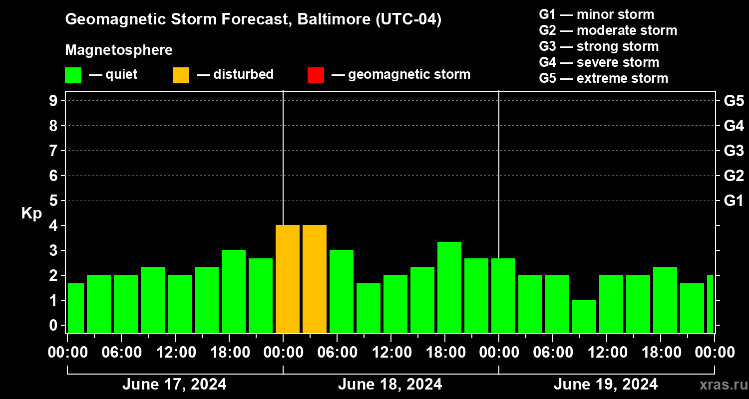 Geomagnetic storm forecast in Baltimore for Jun 17, 2024