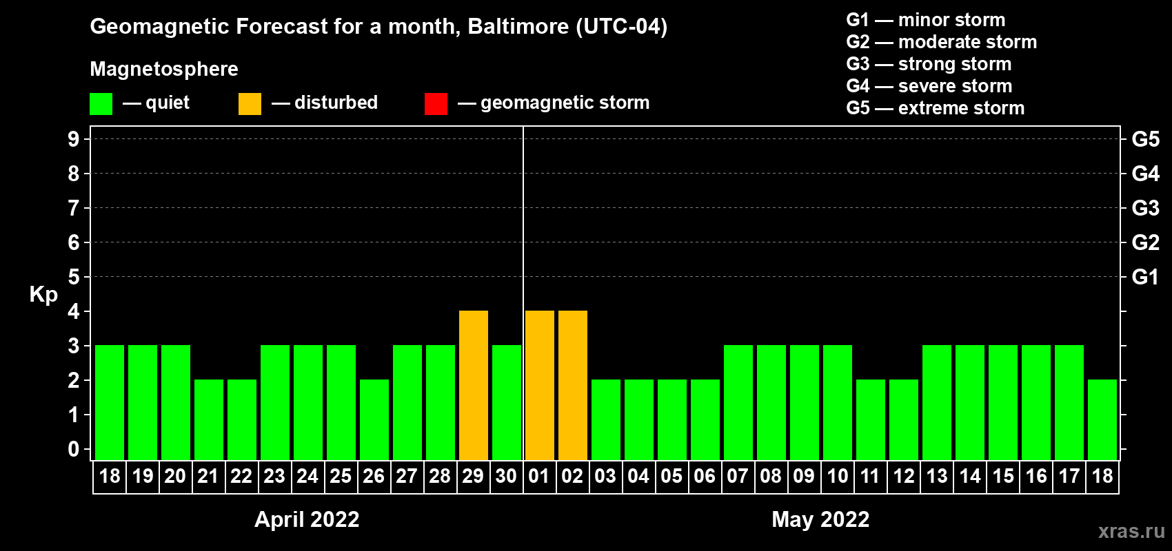 Geomagnetic storm forecast in Baltimore for Apr 18, 2022