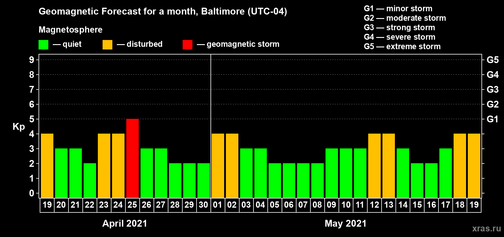 Geomagnetic storm forecast in Baltimore for Apr 19, 2021