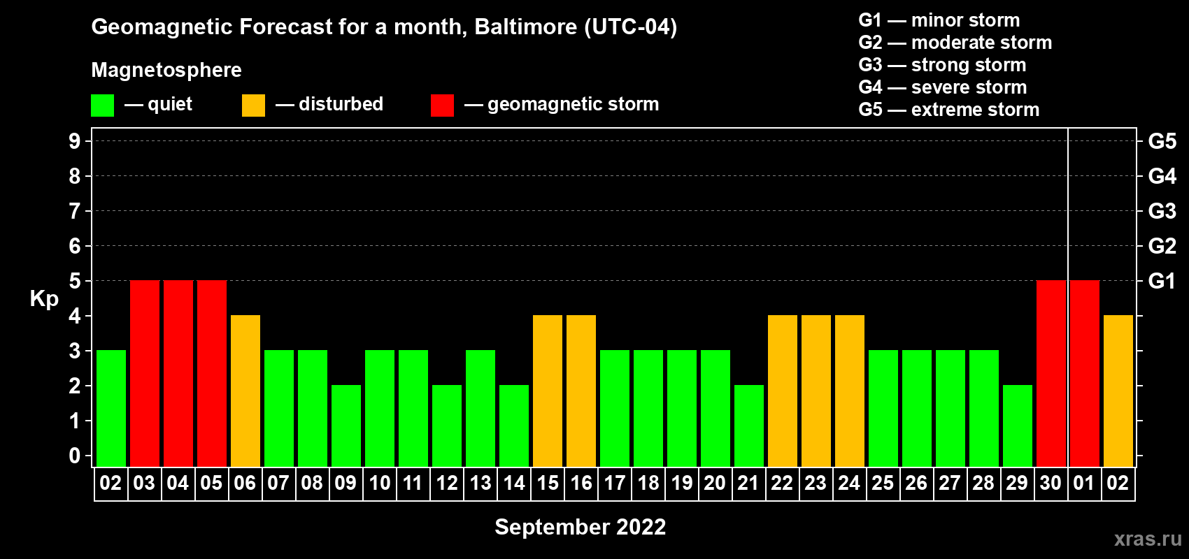 Geomagnetic storm forecast in Baltimore for Sep 02, 2022