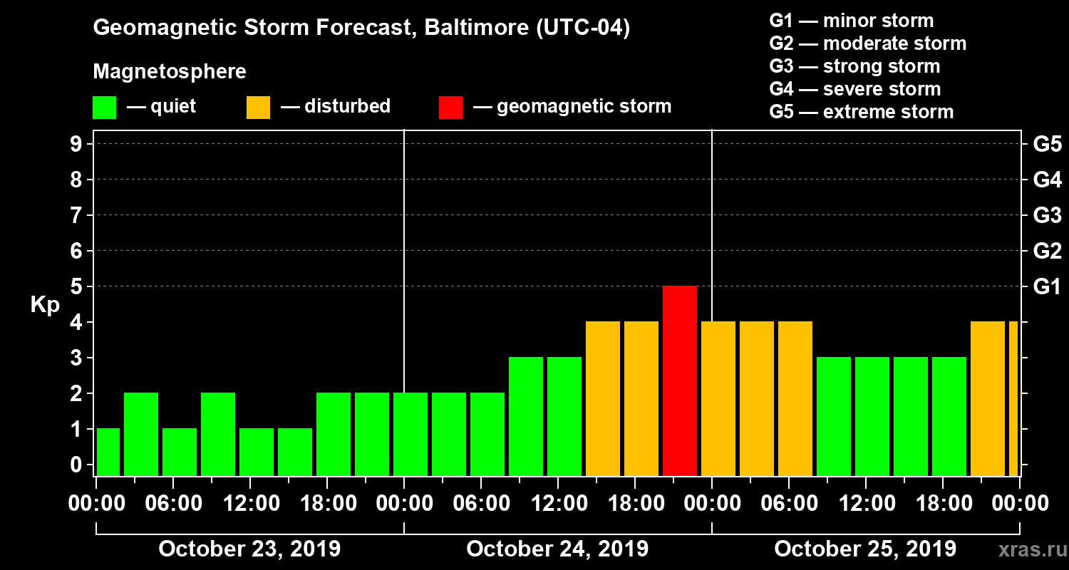 Geomagnetic storm forecast in Baltimore for Oct 23, 2019