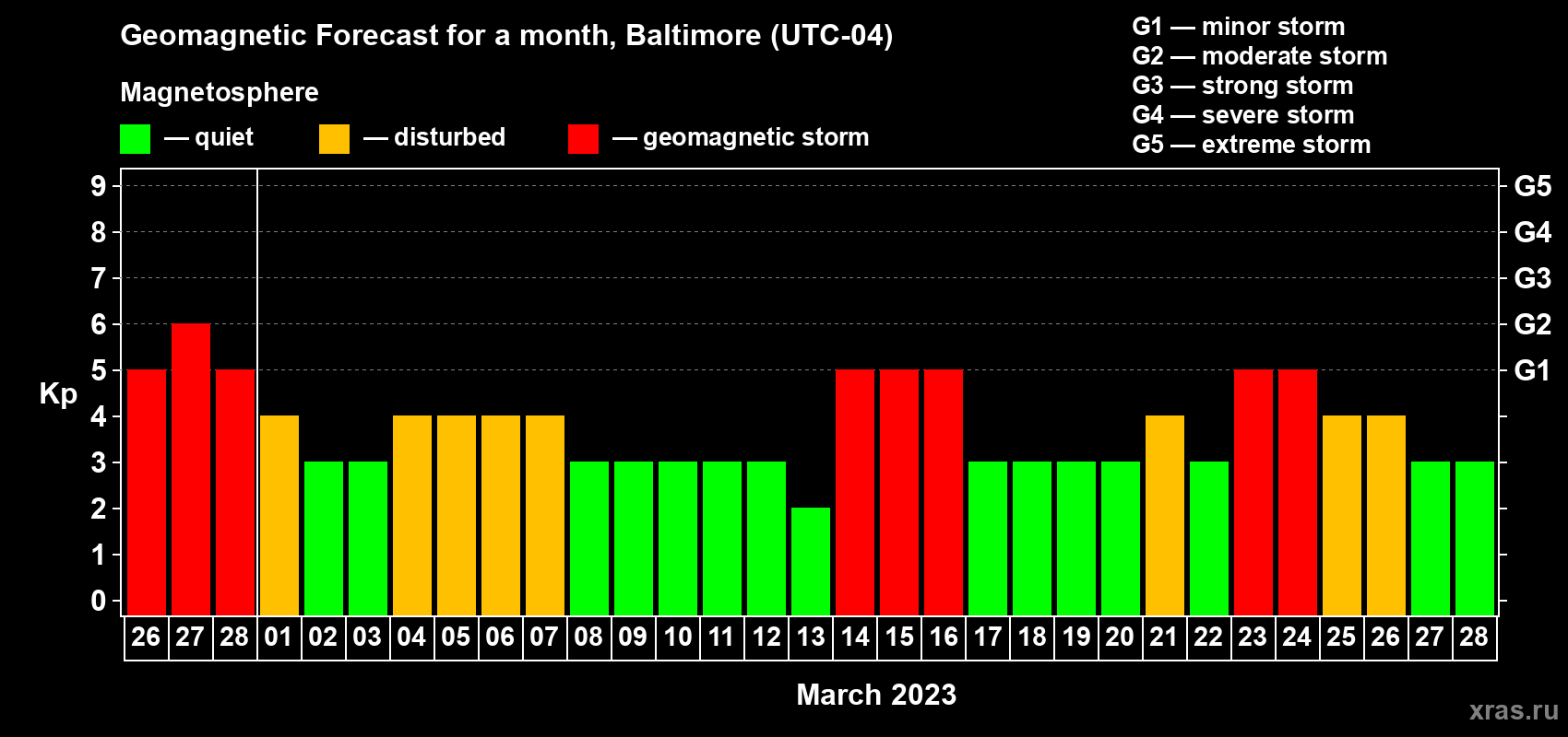 Geomagnetic storm forecast in Baltimore for Feb 26, 2023